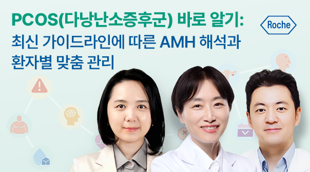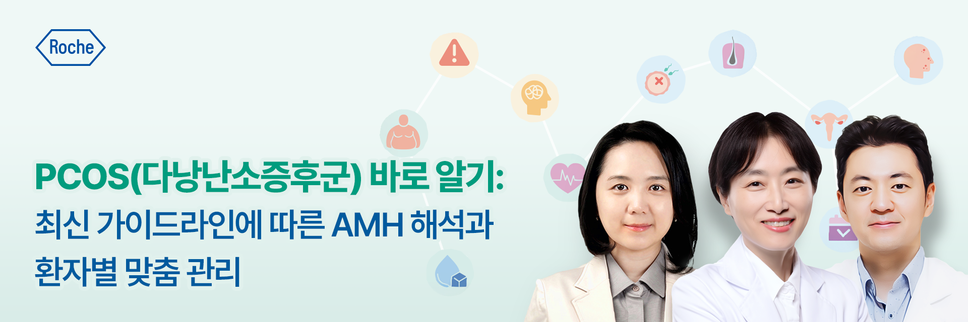 안녕하십니까?항상 선생님들께서 폐사에 주신 귀한 관심에 깊은 감사 드립니다.한국로슈진단에서는 웹심포지엄을 진행하고자 합니다. 이번 Webinar에서는 최신 지견과 정보를 공유할 수 있는 자리를 마련하고자 합니다.본 Webinar에 많은 관심을 가지고 참석하시어 자리를 빛내 주시기를 부탁드립니다.Agenda일시 : 2026.04.06(월) 18:30 ~ 20:30 주제 : PCOS(다낭난소증후군) 바로 알기: 최신 가이드라인에 따른 AMH 해석과 환자별 맞춤 관리좌장: 김진주 교수(서울대학교병원), 연자: 김성은 교수(삼성서울병원) / 김슬기 교수(분당 서울대학교병원) 감사합니다.- 한국로슈진단 올림